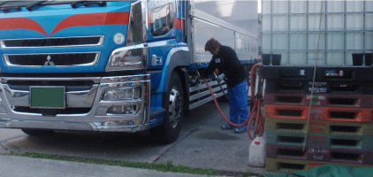 弥富営業所は元サービスステーションとして営業をしていたため、トラックの整備やガソリン・オイル・アドブルーの補充が営業所で手間なく補充できる施設を完備しています。ドライバーの時間を大切にする取り組みです。